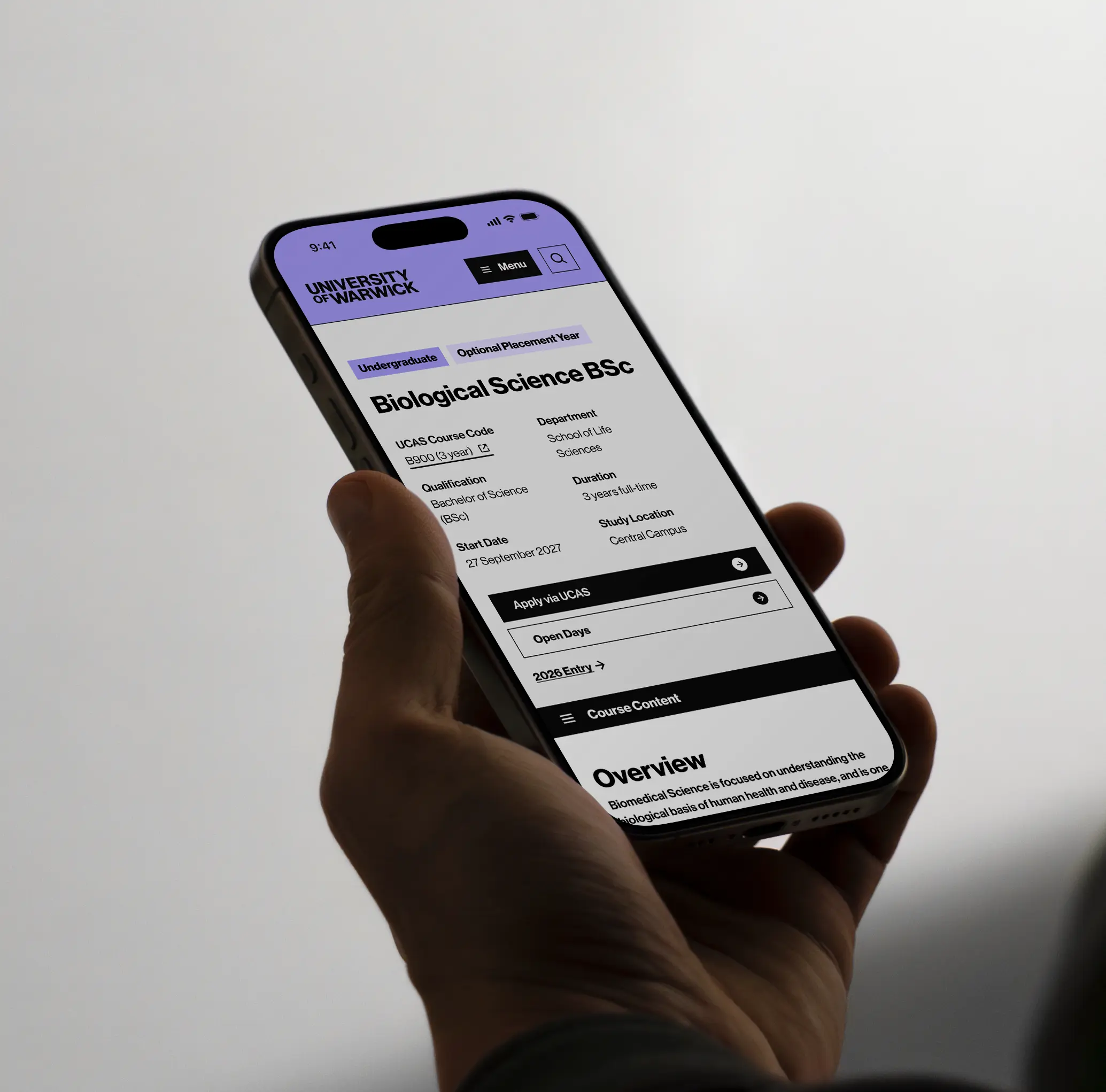 I'm a UI Designer with 3+ years of experience, currently at the University of Warwick where I've been leading UI delivery as part of an £8M digital transformation. Before that I worked as a Digital Designer on campus screens and campaigns, and earlier roles at Roper Rhodes and Aston University gave me a grounding in fast-paced, brand-focused design work. I hold an MSc in User Experience Design and a BA in Graphic Communication, both with distinction, from Birmingham City University.